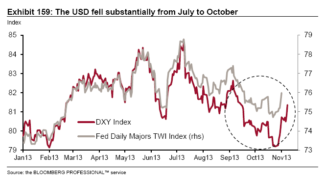 政策再平衡:我們預(yù)計(jì)財(cái)政政策對(duì)美國經(jīng)濟(jì)增長(zhǎng)的阻礙要減小,特別是在2014年,這允許美聯(lián)儲(chǔ)能夠減少資產(chǎn)購買。相反,用來對(duì)抗通貨緊縮而采取貨幣政策的緊迫性可能將集中在日本和歐元區(qū)。