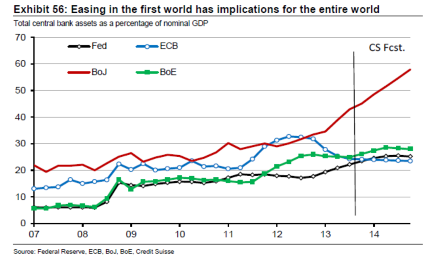 中央銀行展望:2014年貨幣政策仍可能保持刺激型和創(chuàng)新性。我們預(yù)計(jì)美聯(lián)儲(chǔ)的政策將向加強(qiáng)前瞻性指引、減少資產(chǎn)購買的方向發(fā)展。比起接近于零利率時(shí)的前景,創(chuàng)新在沒有約束和跨市場(chǎng)溢出時(shí)通常意味著有更多的市場(chǎng)獲利機(jī)會(huì)。鑒于經(jīng)濟(jì)危機(jī)的嚴(yán)重性以及全球經(jīng)濟(jì)體復(fù)蘇緩慢,發(fā)達(dá)經(jīng)濟(jì)體央行的極度寬松政策將在2014持續(xù)下去。