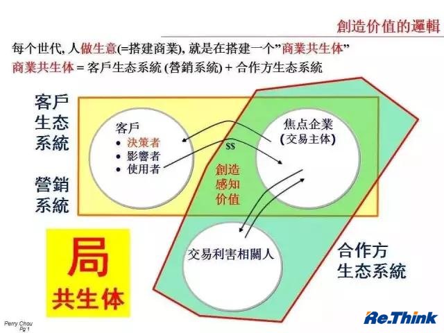 企業為客戶創造價值叫”客戶生態”,為合作方創造價值叫”合作方生態”, 這兩個系統放在一起,才搭建了一個生意, 形成一個局,也就是搭一個“商業共生體”。