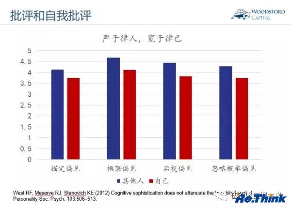 如上圖所示,這些身穿怪T恤的學生,自我感覺大約有一半其他學生會注意到他們。事實上,對他們身上穿的T恤有印象的只有大約20%的學生。 這個實驗告訴我們:我們人類可能犯的一個通病就是太把自己當回事。在很多時候,別人根本沒空來在意你。不管你是優秀的冠軍,或者出丑的笑柄,其實你都沒那么重要。 2017年2月,新加坡總理李顯龍在接受媒體采訪時表示,作為一個領導人,最重要的素質之一就是不要把自己看的太重(Don't take yourself or your philosophy too seriously)。他想要強調的也是這個相同的道理。3 對別人客觀,對自己主觀 我記得以前在學校里讀書的時候,老師會時不時組織一次“批評和自我批評”活動。在該活動中,我們被要求首先進行自我批評,然后再對其他同學進行批評,并接受對方對自己的批評。 研究顯示,當我們在批評其他人時,往往可以“一陣見血”,很容易指出對方身上存在的不足和弱點。但是當輪到對自己進行自我批評時,前面那股“客觀”勁一下子就消失了。